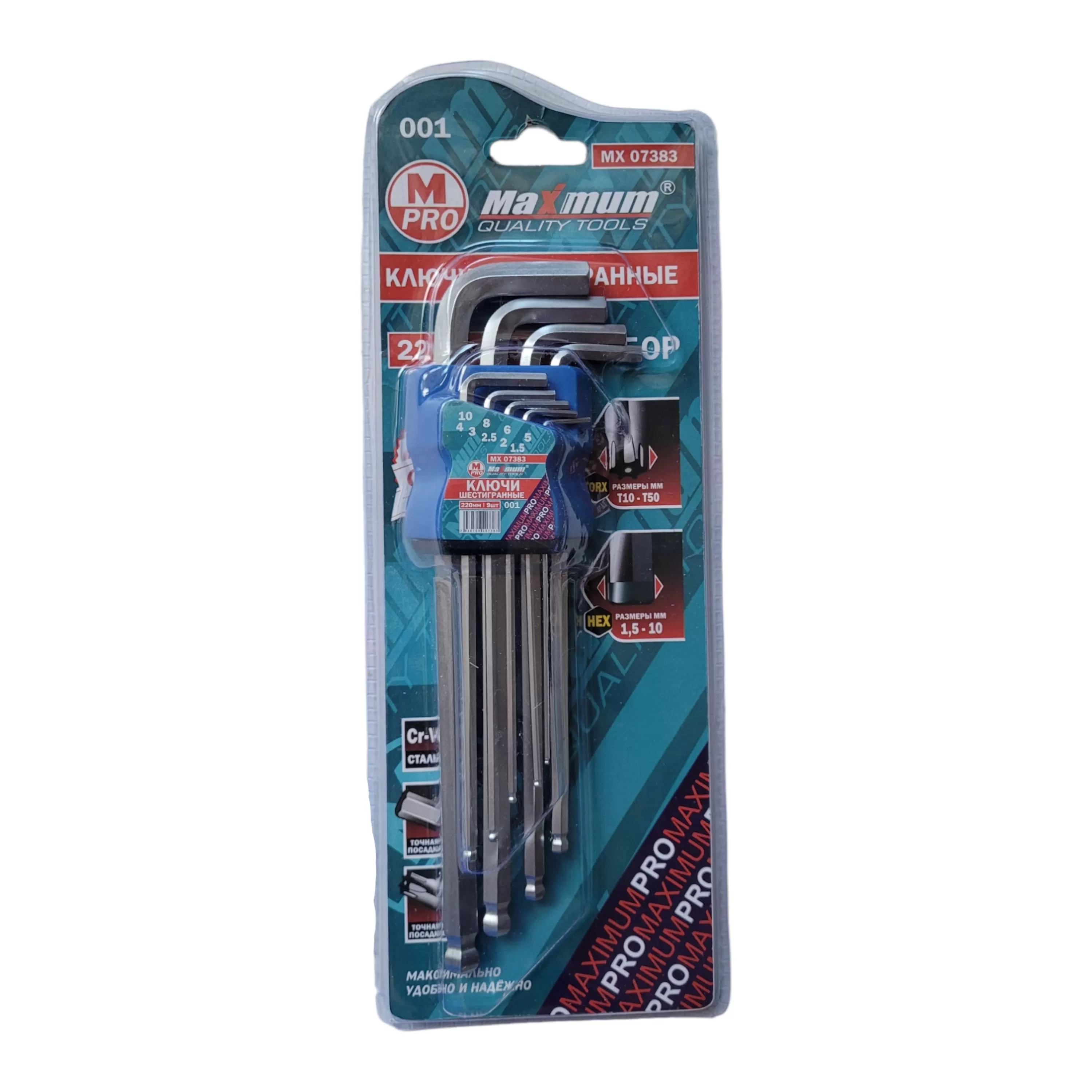 Набор шестигранных ключей от бренда Maximum состоит из 9 предметов в складном открытом футляре для хранения. Маркировка позволяет быстро выбирать нужный ключ. Двухсторонние шестигранники выполнены из высокопрочной стали с антикоррозийным покрытием.