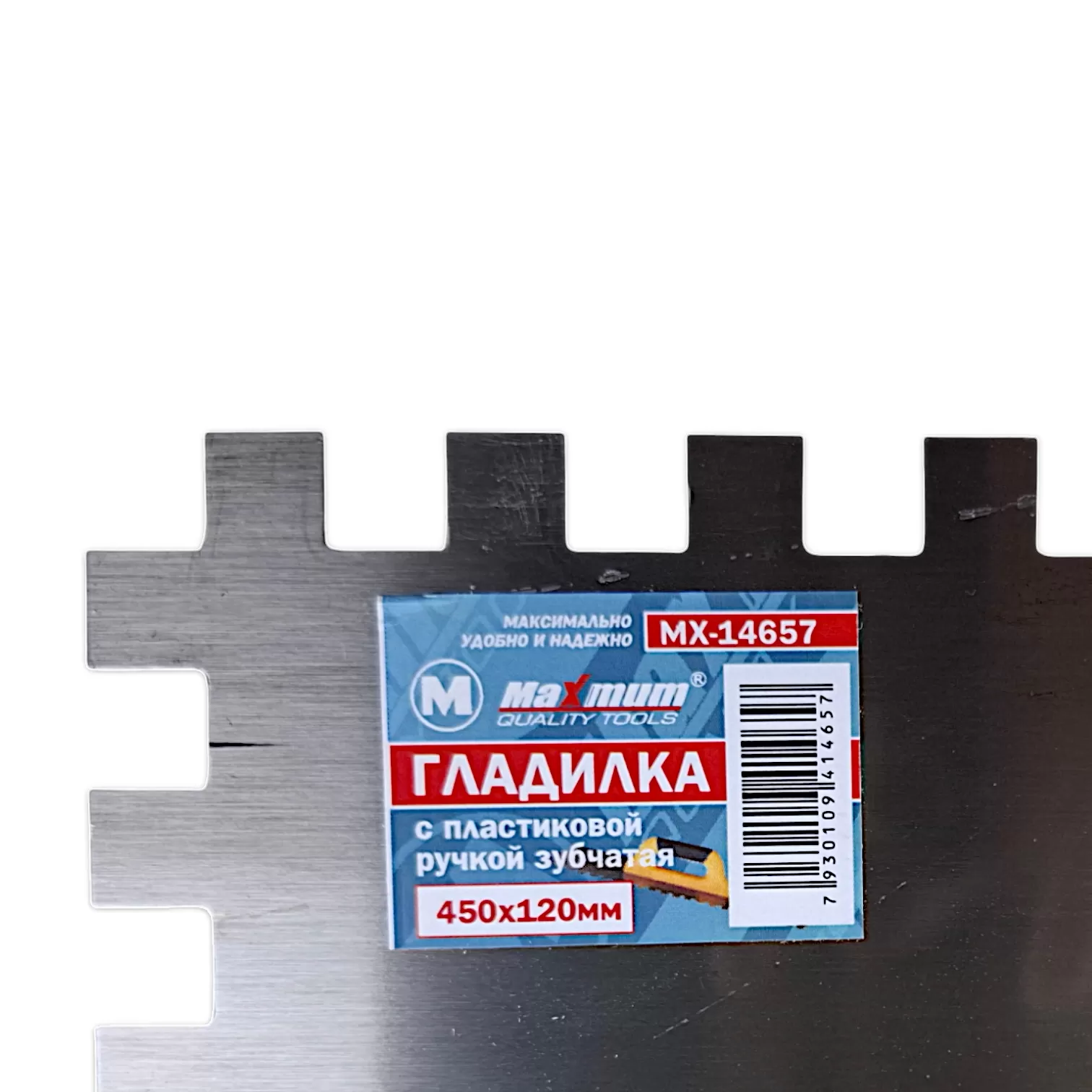 Большая штукатурная зубчатая гладилка 450x120 мм от "Maximum Quality Tools" из нержавеющей стали имеет зеркально отполированное гибкое и прочное полотно. Ручка прорезинена и надежно закреплена. Гладилка зубчатая используется при нанесении и распределении штукатурных смесей и клеевых составов, при этом легко очищается и не боится коррозии.