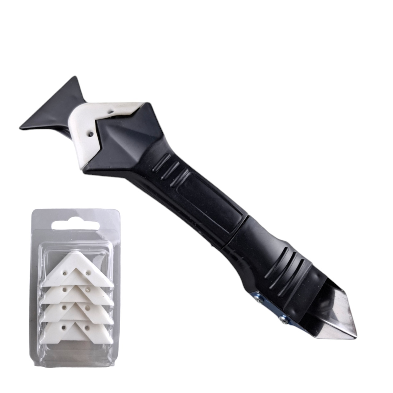 Изготовлен из прочного пластика и идеально подходит для нанесения силиконовых герметиков, шпатлевки и краски. С его помощью вы с легкостью сможете удалить старый слой силикона или шпатлевки, подготовить поверхность перед покраской или затиркой швов.