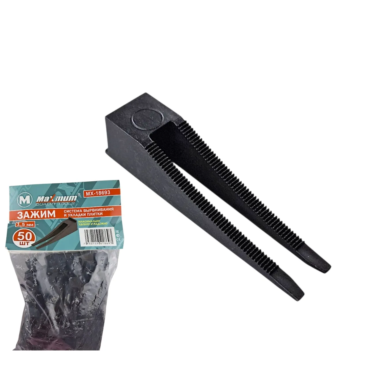Зажим для укладки плитки используется в комплекте клином от "Maximum".
